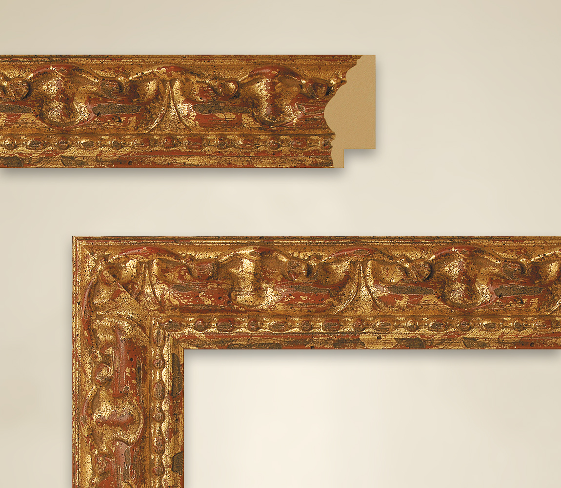 Rámeček na fotografie Lorenza je klasický zlatý rámeček s ornamenty. Rám z pravého dřeva září díky použití zlaté barvy s červenými prvky. A to v celé své velikosti, která je 49 milimetrů široká a 20 milimetrů vysoká. Rámeček Lorenza je stejně efektní jako samostatný rámeček na stěně i v kombinaci s dalšími podobnými rámečky - protože milovníci umění nemají zlatých rámečků nikdy dost. Lorenza se tomu přizpůsobí a stále bude vyzařovat svou vlastní osobnost. Hned za úzkým okrajem na vnějším okraji následuje široká část, která je plná ornamentů. Zde může divák popustit uzdu své fantazii - ať už se jedná o stuhu z období baroka nebo květinové prvky. Následuje užší pruh s kulatými řetízkovými články, které tvoří řadu vedle sebe, a Lorenza končí rovným zakončovacím pruhem. Všechny se lesknou zlatou barvou a červenohnědými akcenty, které navozují starobylou atmosféru. |