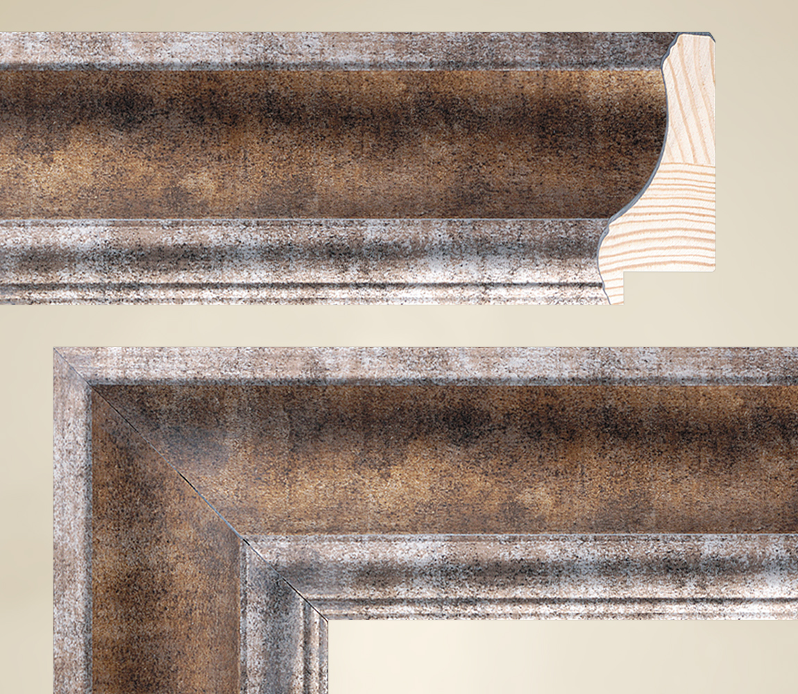 Designéři série rámů Ambiente vytvořili obrazový rám Rachel v bronzové barvě se stupňovitými okraji. Díky jednobarevnému provedení lze Rachel flexibilně používat. Nezáleží na tom, který umělec nebo umělecká epocha vás zajímá, jaký umělecký styl preferujete, Rachel umně připraví scénu pro každé umělecké dílo. Bronzová barva rámu je stylistickým prvkem, který se hodí k různým barevným schématům. Znalec umění si zde může vybrat umělecké výtisky ve stejném odstínu, zarámovat barevná díla, ale stejně tak se rozhodnout pro obrazy v černobílém provedení. Do Rachel se vejdou všechny myslitelné umělecké obrazy. Bronzový odstín byl zvolen pro hlavní centrální bar, který má hladký povrch a prochází místností shora dolů. Jejími společníky jsou užší dřevěné obruby na vnější a vnitřní straně. Horní se skládá ze tří filigránových dřevěných proužků navlečených na sebe, zatímco vnitřní proužek má zaoblený tvar a je proložen dalšími dvěma úzkými linkami. Jejich vnitřní i vnější strana byla opatřena stříbřitě šedou barvou. Pro všechny tři oblasti navrhli designéři mramorování. Zatímco na světlých vnějších okrajích je vidět mramorování v bronzovém odstínu středního okraje, ten byl zase opatřen mramorováním v různých odstínech tmavě hnědé. Mramorování spojů umožňuje optické prolnutí těchto tří oblastí. |