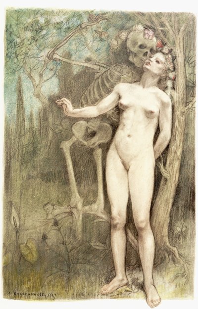 L'Esperance Alegorie naděje jako nahá mladá žena sedící v krajině ruin. obraz Pierra Puvise de Chavannes (1824-1898) 1872 ne. 0,7x0,82 m Paříž, Musee d'Orsay