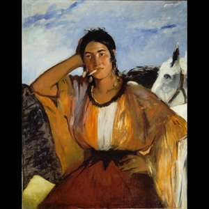 Edouard Manet byl modernistický malíř, jehož dílo mělo zásadní význam pro přechod od realismu k impresionismu. Manet se narodil do rodiny z vyšší společenské vrstvy s vysokým politickým vlivem. Jeho otec byl náčelníkem štábu ministerstva spravedlnosti a umožnil synovi získat odpovídající vzdělání. Maneta však škola příliš nebavila a byl spíše neprospívajícím studentem. Jeho strýc v něm probudil zájem o umění a často s ním navštěvoval Louvre. Poradil mu, aby navštěvoval speciální umělecký kurz, kde se spřátelil s Antonínem Proustem. Manetovi rodiče byli proti jeho touze stát se umělcem a navrhli mu studium práv. To však opět nevyhovovalo Manetovým představám. Na radu svého otce odjel do Ria de Janeira jako učeň na výcvikovou loď. Protože však dvakrát neuspěl u přijímacích zkoušek na námořní školu, rodiče nakonec ustoupili a dovolili mu studovat umění. V 18 letech se Manet stal učněm klasického malíře Thomase Coutura a zůstal u něj šest let. V tomto období také podnikl několik studijních cest do Německa, Itálie a Nizozemska. Na těchto cestách se setkal s umělci Fransem Halsem, Diegem Velázquezem a Franciscem José de Goyou, kteří ho významně ovlivnili.