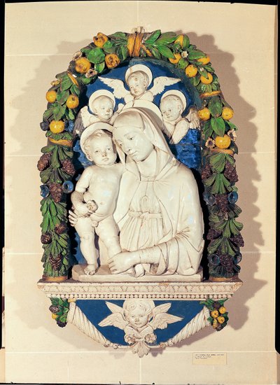 Nanebevstoupení Ježíše do nebe s Pannou Marií a jedenácti Apoly Nízký keramický reliéf od Andrea della Robbia (1435-1525) kolem 1490 Rozm. 475 x 305 cm Santuario della Verna, Itálie