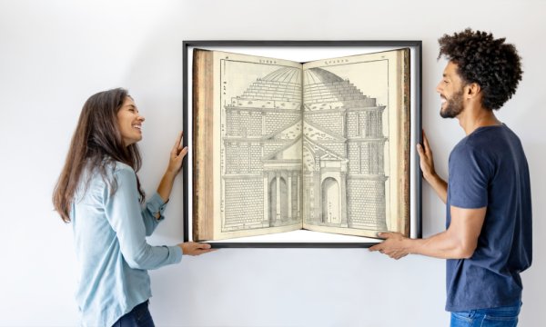 Dekorativní detaily z chrámu Antonina a Faustiny, ilustrace z faksimilní kopie „I Quattro Libri dell'Architettura“ od Palladia, původně vydané v roce 1570