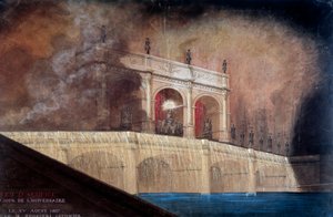Druhé dějství dílu, Aido. Velká opera o čtyřech dějstvích a sedmi obrazech Giuseppe Verdiho (1813-1901) hraje v italském divadle v Paříži. Gravírování v „“L'univers llustrious““
