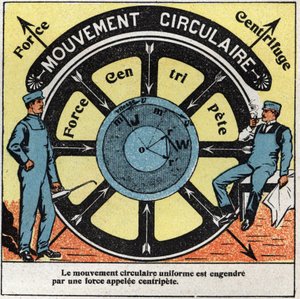 Vibrační pohyby: vlnová délka. Kámen, který spadne do vody, se sníží a poté zvedne hladinu, špunty ve vodě jdou nahoru a dolů, ale zůstávají na svém místě. Anonymní ilustrace z roku 1925. Soukromá sbírka.