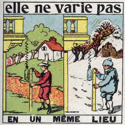Zrnitost: zákon prostorů. Galilee (nebo Galileo Galilei (1564-1642) pozoruje pohyb koule na nakloněné rovině, aby studoval pád těl. Anonymní ilustrace z roku 1925. Soukromá sbírka.