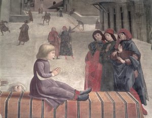 Domenico Ghirlandaio patří k renesančnímu umění a za svého života byl jedním z nejslavnějších malířů a tvůrců fresek ve Florencii. Mladý UMĚLEC1 vstoupil do dílny mistra Domenica di Tommaso Curradi di Doffo Bigordi, jak se jmenoval celým jménem, ve svých třinácti letech v roce 1487. Od úspěšného umělce se naučil základy malby a navrhování mozaik. Ghirlandaio se původně chtěl vyučit zlatníkem, ale nakonec nastoupil do umělecké dílny Alesso Baldovinetti, kde studoval malbu a mozaiku. Poté se stal samostatně výdělečně činným a dostával stále více zakázek z nejvyšších společenských kruhů ve Florencii. Tento malíř obrazů a fresek se ukázal jako mimořádně produktivní a vytvořil velké množství uměleckých děl pro soukromé i církevní klienty. V jeho motivech se objevují sakrální i profánní témata a silný důraz na renesanční společenský život. Byl považován za jednoho z nejpřesnějších pozorovatelů a kronikářů své doby. Uměleckým vrcholem byly zakázky na výzdobu dvou sakrálních staveb: Kostel Santa Maria Novella ve Florencii a Sixtinská kaple ve Vatikánu. Jak bylo v renesanci zvykem, umělec zvěčnil své mecenáše a patrony na sakrálních nástěnných malbách, které byly povýšeny na božské tím, že byly začleněny do biblických vyobrazení. V letech 1485 až 1490 Ghirlandaio realizoval svůj mariánský cyklus a dvě další fresky v soukromých kaplích ve Florencii. Na nástěnných malbách vzdal hold rodině Medicejských, jejíž členové byli vtaženi do kruhu Matky Boží. V letech 1481 a 1482 na objednávku papeže částečně vyzdobil stěny Sixtinské kaple obrazem Vzývání apoštolů. Jeho vyobrazení Poslední večeře v San Marco ve Florencii sloužilo jako přímý vzor pro variaci Leonarda da Vinciho.