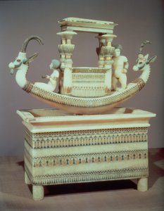 Egyptský starověk: Zlatý sarkofág Cisele obsahoval vnitřnosti zesnulého. Od pokladníka Tutanchamona (vše-Ankh-amun nebo Tutanchamon) (1345-1327 př. n. l.) 18. dynastie. nalezený v Údolí králů v Thébách. 1342 před naším letopočtem. Káhira, Egyptské muzeum