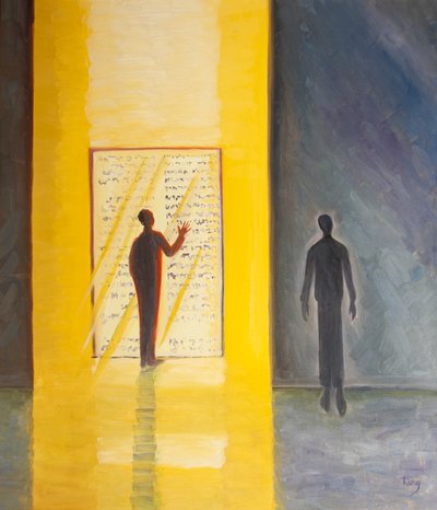 Lidé, kteří se ocitnou v nepokojích nebo tragédiích, reagují různými způsoby: Moudří se obracejí k Bohu a otevírají mu svá srdce, 2005 (akvarel na papíře)