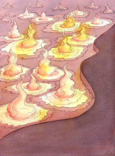 Daleko "pod" nebem a zemí je stav téměř temnoty, kde se vzpurné a nekající duše ocitají - díky svým vlastním rozhodnutím - zcela bez radosti, naděje a krásy, 2005 (akvarel na papíře)