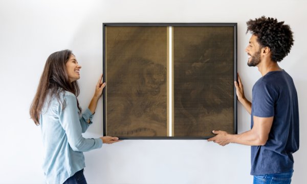 très belle réalisation qui met en valeur l'œuvre choisi au point que l'œil va sur la toile alors qu'il y a d'autres œuvres d'art de l'époque dans la pièce. Merci pour cette réalisation sur toile avec le ton pierre. Merci beaucoup ! et bonnes suites !!!