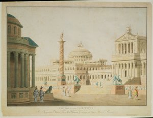 Kapitol, výprava pro „Tita“, od Wolfganga Amadea Mozarta (1756-91), představení režírované Antonem Genastem v Hoftheater ve Vídni, vyryto umělcem, 1815