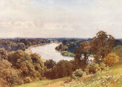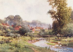 Poblíž Exeteru. Malá holčička prochází květinovou zahradou s kočkou v náručí. Obraz Harolda Suttona Palmera (1854-1933, Velká Británie) Soukromá sbírka