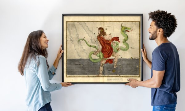 Souhvězdí hadů Caput a Serpens Cauda, z knihy „Uranometria“, kterou napsal Johann Bayer a vyryl Alexander Mair (1559-c.1616) 1603 (ručně kolorovaná mědirytina)