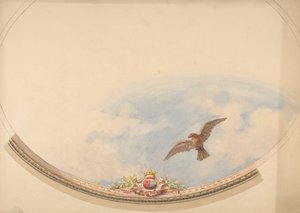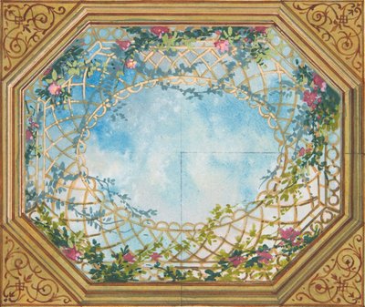 Design pro pokoj s dřevěnými panely vykládanými malbami a silně vyřezávanými dvoukřídlými dveřmi, 1830-97. Tvůrci: Jules-Edmond-Charles Lachaise, Eugène-Pierre Gourdet.