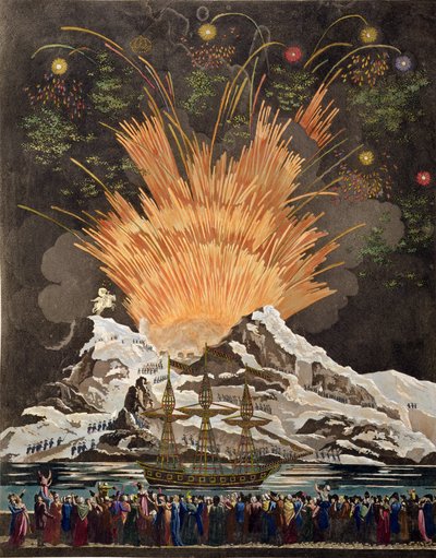 Posvátný festival a korunovace jejich císařských veličenstev, dekorace naproti náměstí Place de Greve pro festival pořádaný městem Paříž, vydáno 1806 (ručně tónovaná rytina)