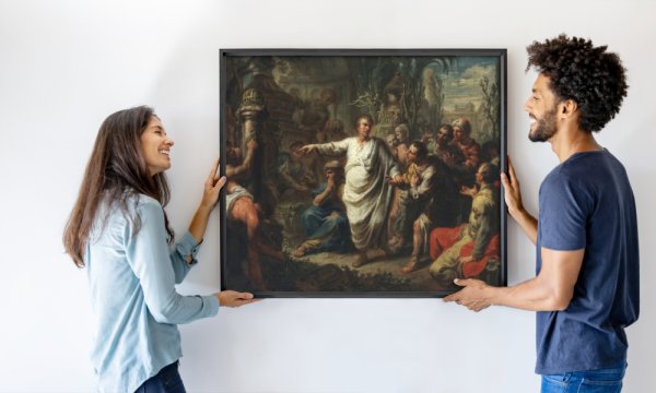 très belle réalisation qui met en valeur l'œuvre choisi au point que l'œil va sur la toile alors qu'il y a d'autres œuvres d'art de l'époque dans la pièce. Merci pour cette réalisation sur toile avec le ton pierre. Merci beaucoup ! et bonnes suites !!!