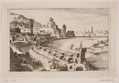 Flodlandskab med slot på en banke