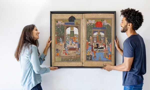 Stránka z alba pro Džahángíra, recto, kaligrafie na rektu 1. polovina 16. století; obrázek na versu cca 1590; album cca 1608-19 (akvarel, zlato a tuš na papíře)