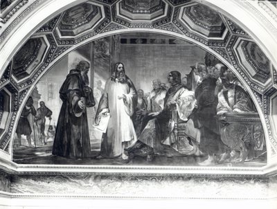 Alessandro (Alexandre) Volta (1745-1827) předložil v roce 1801 konzulovi Napoleonovi Bonapartovi (1769-1821) v Institut national de France výsledky svých experimentů, které mu umožnily vynalézt elektrickou baterii Derriere Napoleon od francouzských vědců.