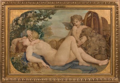 Vize svatého Huberta, který šel na lov do lesa, zázračně vidí Boha zjevujícího se v podobě jelena. Plátno marouflee od Paula Jacquese Aime Baudryho (1828-1886) 1882 Sun. 2,3x2,06 m Chantilly, Musee Conde