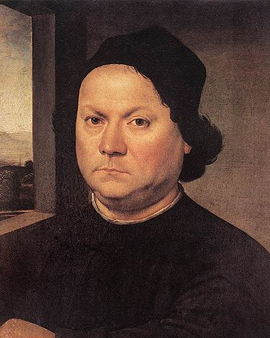 Pietro Perugino se narodil jako Pietro di Christoforo Vannucci. Později přijal jméno Perugino podle svého rodného kraje Perugia. Byl italským renesančním malířem a patřil k umbrijské škole. Ačkoli byl sám velmi talentovaný a v počátcích své tvorby jistě dokázal dosáhnout velkého věhlasu, později byl rychle zastíněn jinými velkými umělci své doby. Jeho nejslavnějším žákem byl Rafael, který se od něj učil malovat fresky. Peruginův raný život, rodinné zázemí a podrobnosti o jeho vzdělání nejsou jednoznačně doloženy. S největší pravděpodobností byl nejprve žákem Fiorena di Lorenzo, středně známého perugijského malíře, a poté odešel do Arezza ke slavnému umbrijskému malíři Piero della Francesca. Jedním z jeho spolužáků ve Francescově ateliéru byl Luca Signorelli. Oba muži se zřejmě dobře znali, protože Signorelliho vliv byl patrný na některých Peruginových obrazech.