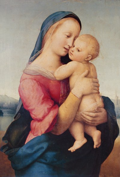 Raffaello Sanzio (1483-1520) je považován za jednoho z nejvýznamnějších italských malířů a architektů vrcholné renesance. Tradičně je řazen mezi tři velké mistry tohoto období spolu s Leonardo da Vinci a Michelangelo. Za svého života byl natolik známý, že se o něm mluvilo pouze křestním jménem. Narodil se v Urbinu a v mládí přišel o rodiče. Když mu bylo osm let, zemřela mu matka. Jeho otec, malíř Giovanni Santi, zemřel, když bylo Rafaelovi 11 let. První umělecké vzdělání získal Rafael pravděpodobně již od svého otce a vyučil se u malíře Perugino. Talentovaný chlapec se brzy dokázal přiblížit stylu svého mistra tak dokonale, že jejich díla bylo těžké rozeznat. Jak ukazují rané pracovní smlouvy, byl Rafael již ve svých 17 letech označován za mistra.