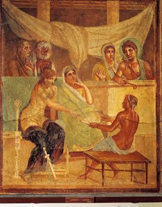 Římské umění: věta egyptského krále Bakenranefa (Bocchoris) - detail fresky vlysu místnosti C, vila Farnesina (římské umění: rozsudek krále Boccorise, z vlysu pokoje C, Villa farnesina) Řím museo nazionale romano