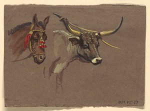 Drawing, Two studies. Cattle, 1876