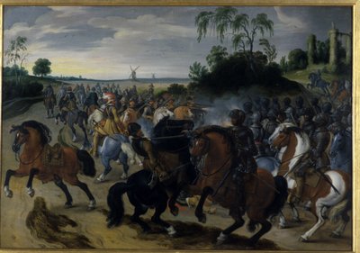 Sebastian Vrancx byl významný vlámský malíř barokní éry, známý především svými detailními bitevními scénami, krajinami a žánrovými obrazy. Vrancx se narodil v Antverpách v roce 1573 a většinu života strávil ve svém rodném městě, což se odráží i v námětech, které si vybíral. Byl členem antverpského cechu svatého Lukáše a často spolupracoval s dalšími umělci, zejména s Janem Brueghelem starším. Vrancx se specializoval na zobrazování vojenských scén, přepadů a jezdeckých potyček, přičemž kladl velký důraz na realistické ztvárnění uniforem, zbraní a koní. Jeho díla se vyznačují pozoruhodným smyslem pro detail a dynamickými kompozicemi, které živě přenášejí děj.