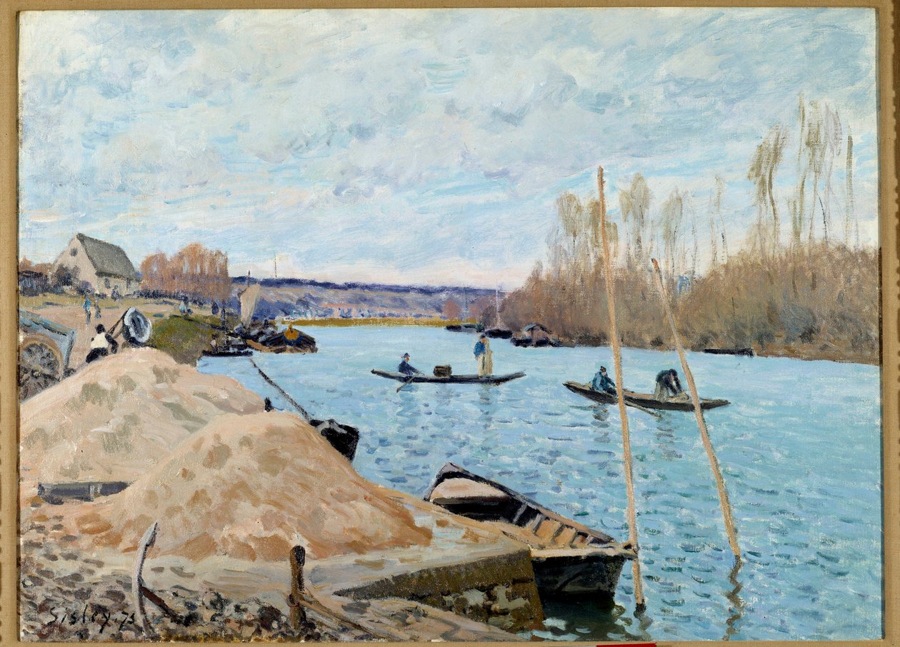Seine satamassa, Marly, hiekkapaalu(The Seine in Port, Marly, sandpile)Alfred Sisley |