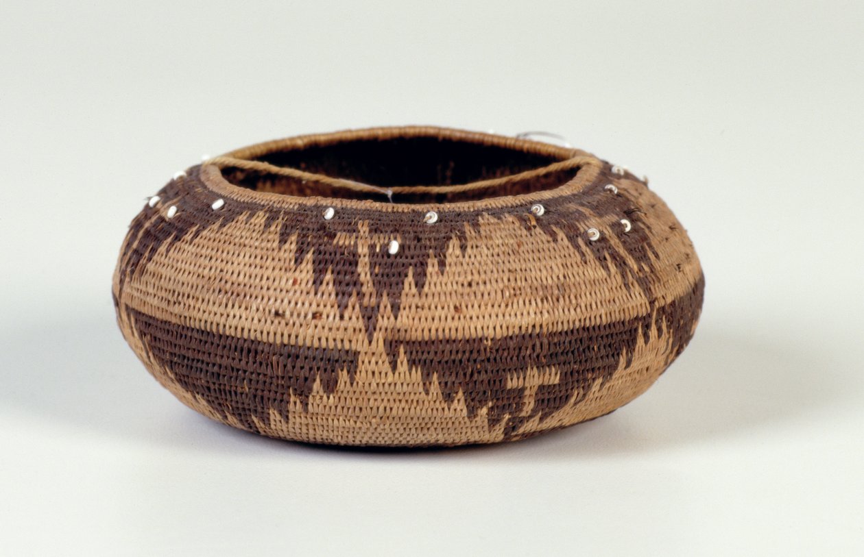 Miniaturní košík, cca 1900 (pruty dlahy, kořen vrby nebo ostřice, kořen kapradiny a lastura škeble)(Miniature Basket, c.1900 (splint rods, willow or sedge root, bracken fern root, and clam shell))American School |