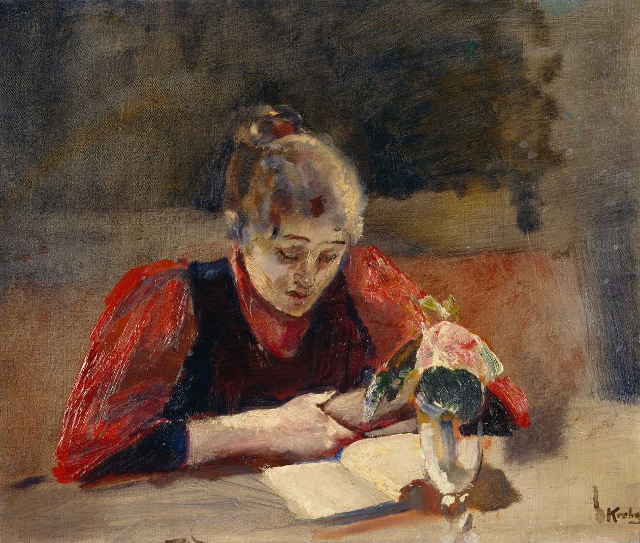 Oda sedí a čte(Oda sits and read)Christian Krohg |