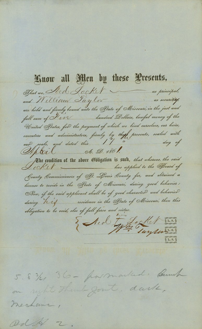 Ned Locket zdarma černoch Bond(Ned Locket Free Negro Bond)County Court of St.Louis |