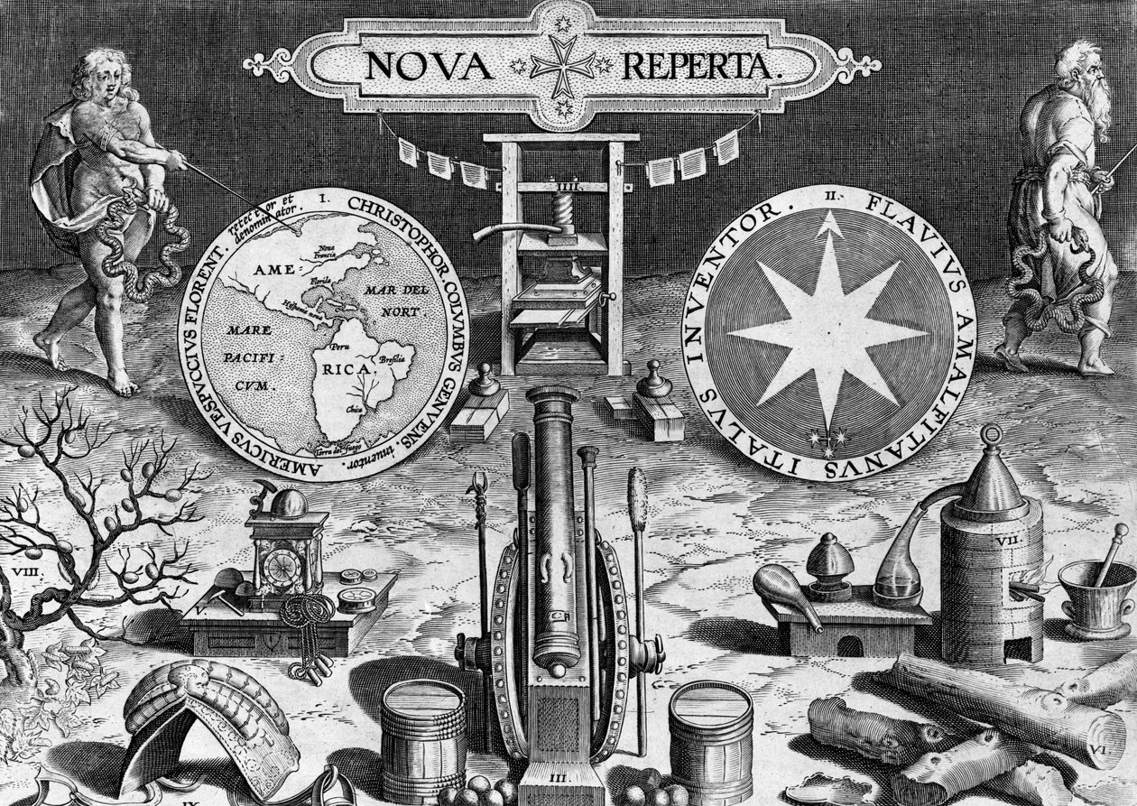 Frontispis k 'Nova Reperta', vyryl Theodor Galle, kolem 1580-1605(Frontispiece to 'Nova Reperta', engraved by Theodor Galle, c.1580-1605 )Jan van der Straet |