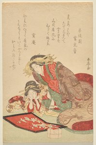 Ichikawa Danjûrô VII a Segawa Kikunojô V v het toneelstuk Shibaraku(Ichikawa Danjûrô VII en Segawa Kikunojô V in het toneelstuk Shibaraku)Katsukawa Shuntei(print maker),Danjûrô Enba,Issen |
