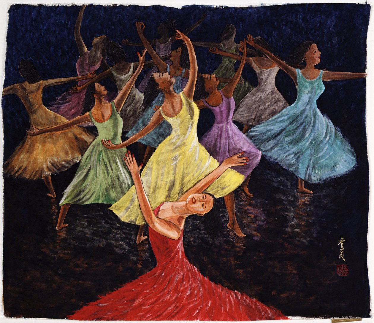 Jevištní prezentace, 1994 (kvaš na hedvábí)(Stage Presentation, 1994 (gouache on silk))Komi Chen |