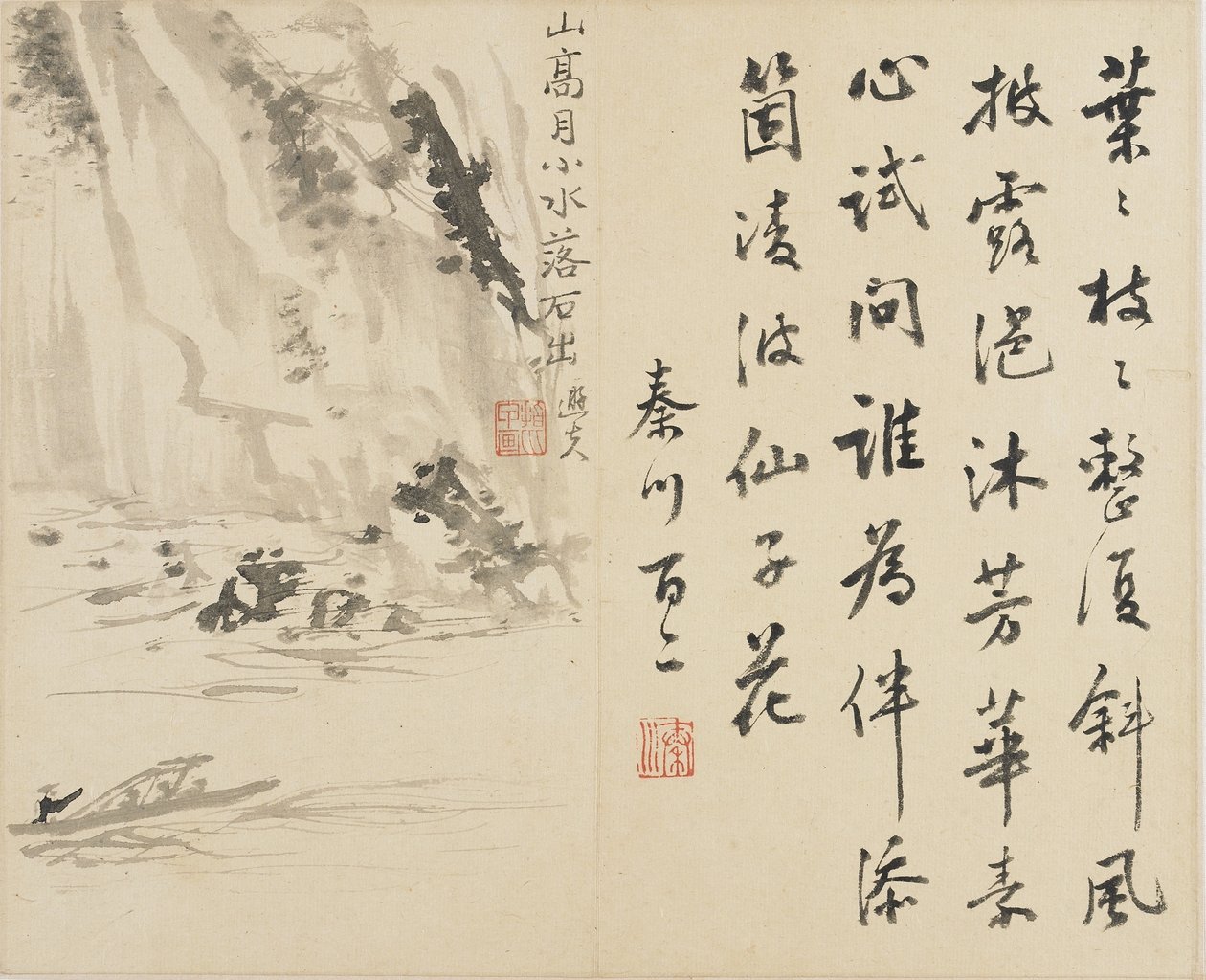 Krajiny, květiny a ptáci: Muž ve člunu míjející útes, dynastie Čching, 1780 (inkoust na papíře)(Landscapes, Flowers and Birds: Man in a boat passing a cliff, Qing Dynasty, 1780 (ink on paper))Luo Ping |