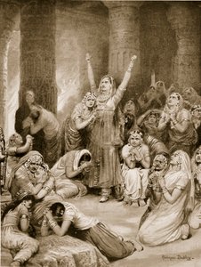 Mercy at the Wicker Gate, z knihy The Pilgrims Progress vydané Johnem F. Shawem & Co, kolem 1900 (barevné lito)(Mercy at the Wicker Gate, from The Pilgrims Progress published by John F Shaw & Co, c.1900's (colour litho))Robert Ambrose Dudley |