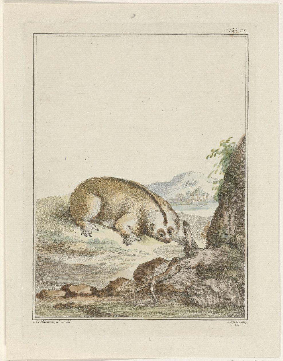 Lenochod(Luiaard)Simon Fokke(print maker),Aert Schouman(after drawing by) |
