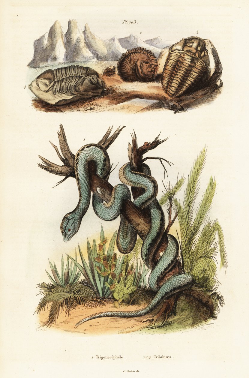 Martinican pit zmije a vyhynulí trilobiti.(Martinican pit viper and extinct trilobites.)Unbekannter Künstler |