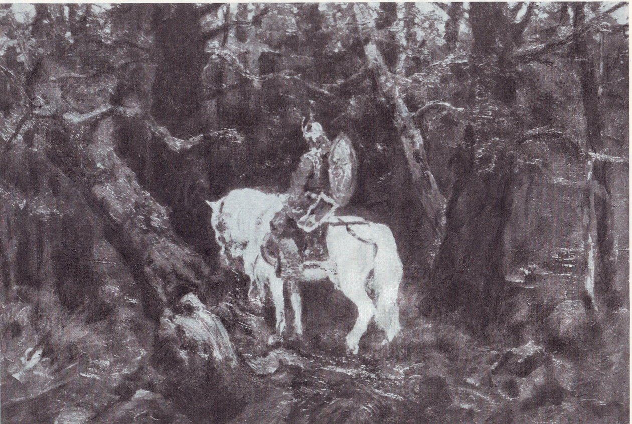 V myšlenkách (Rytíř na koni vstupuje do hustého lesa)(В раздумье (Витязь на коне въезжает в дремучий бор) )V.Vasnetsov |