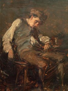 Podzimní okraj lesa s sedící červenou bundou(Herbstlicher Waldrand mit sitzender Rotjacke)Wilhelm Busch |