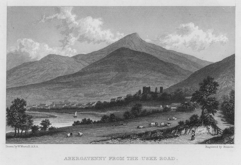Abergavenny z Uske Road (rytina)(Abergavenny from the Uske Road (engraving))William (after) Westall |